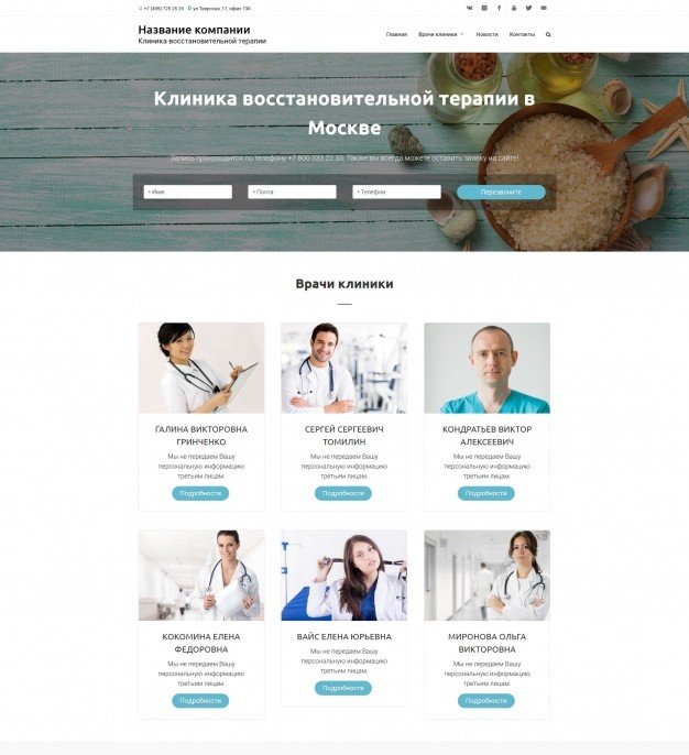 Корпоративный многостраничный сайт, в котором есть подробная информация о всех предоставляемых вами услугах и докторах
